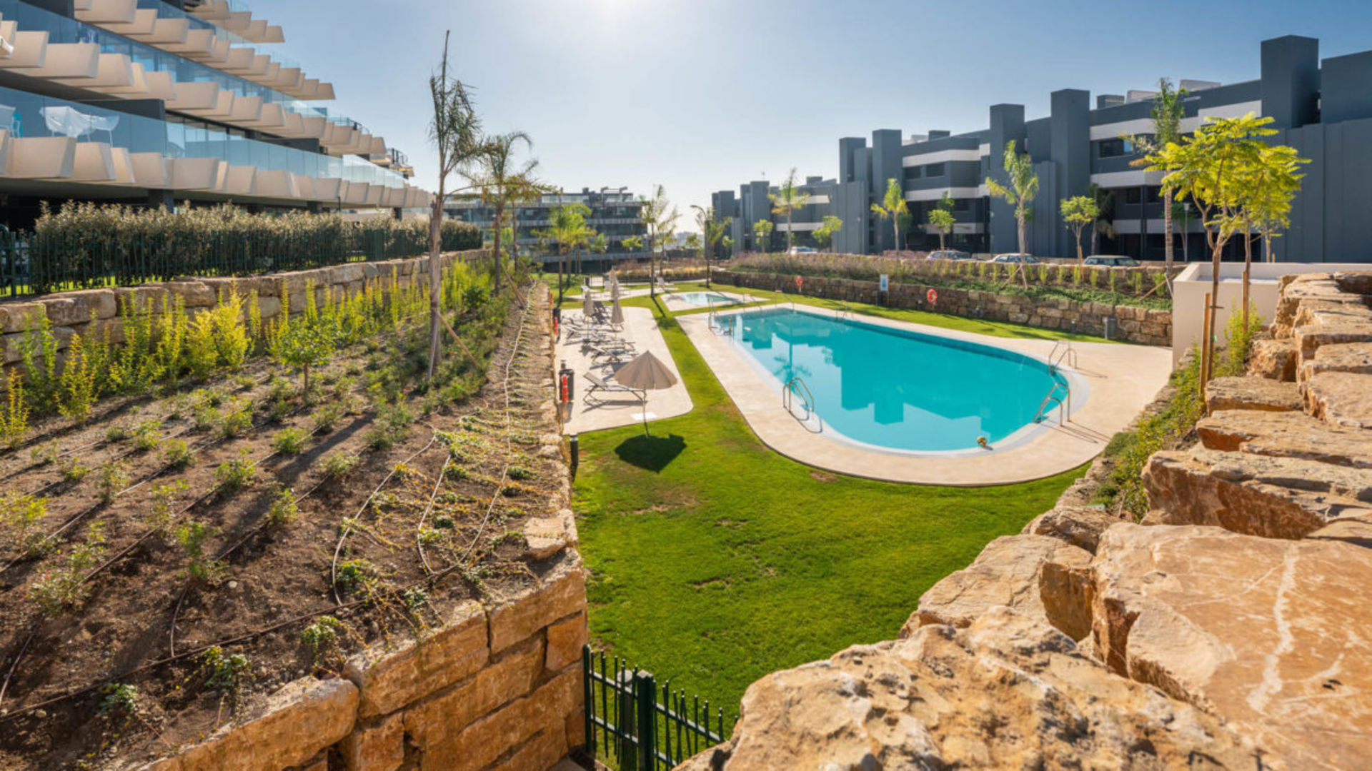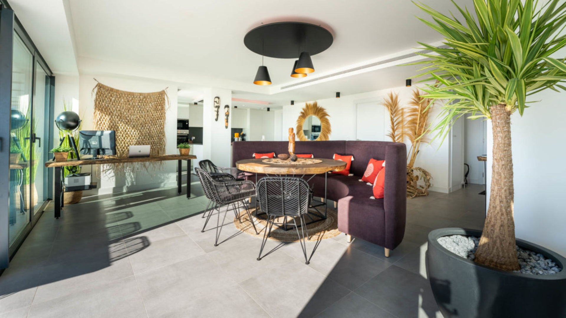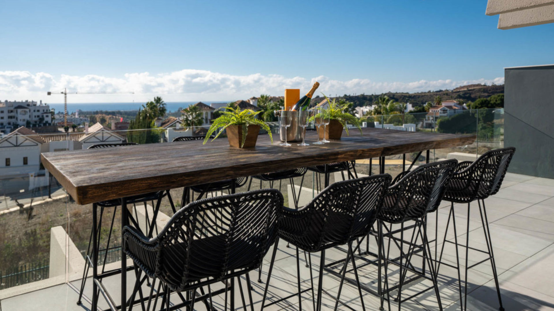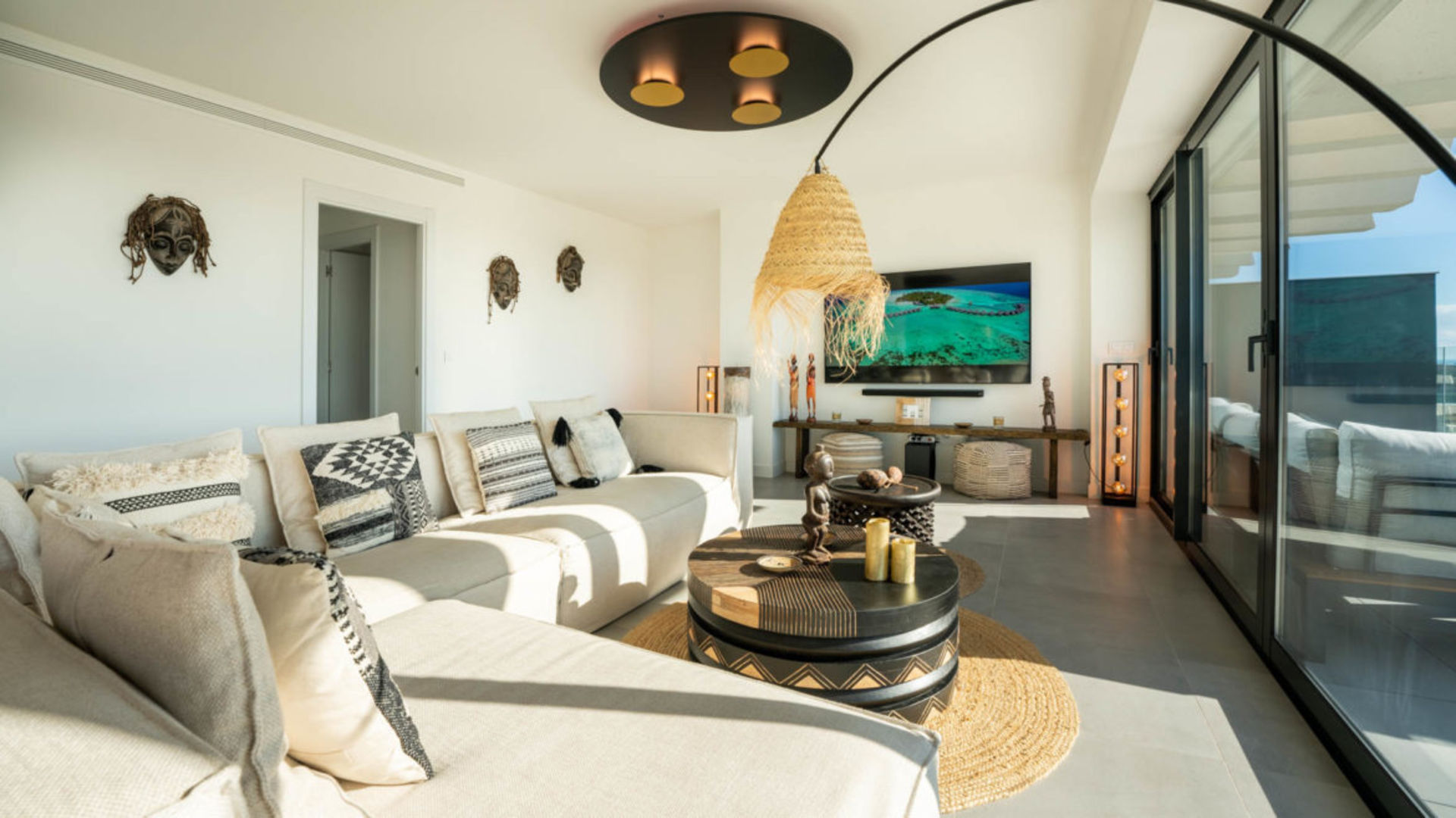 Luxe nieuwbouw appartement met zwembad, gym en spa met 180 graden zeezicht. Geniet in alle rust dit dubbele nieuwbouw appartement in de 'New Golden Mile'. Een Boho, licht Afrikaans getint interieur met een open keuken en woonkamer, die moeiteloos overgaan in een ruim terras (70m2). Perfect om buiten te dineren of te genieten van de zon op de ligbedden.